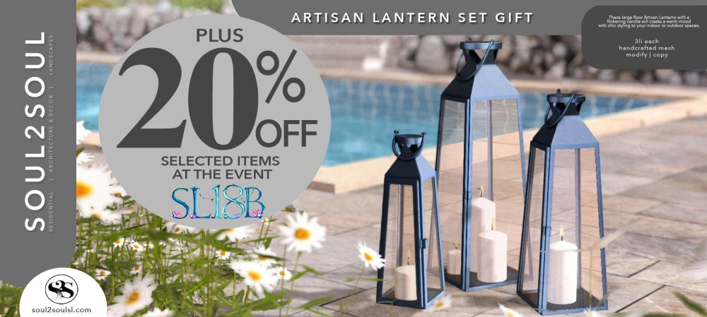 You’ll find a Fatpack of the Artisan Lantern Set in 4 metal texture options available at the Soul2Soul Mainstore.