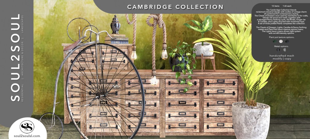 The Chests of Drawers, Lights, Candles & Penny Farthing metals and Plant Pots have a texture options menu.