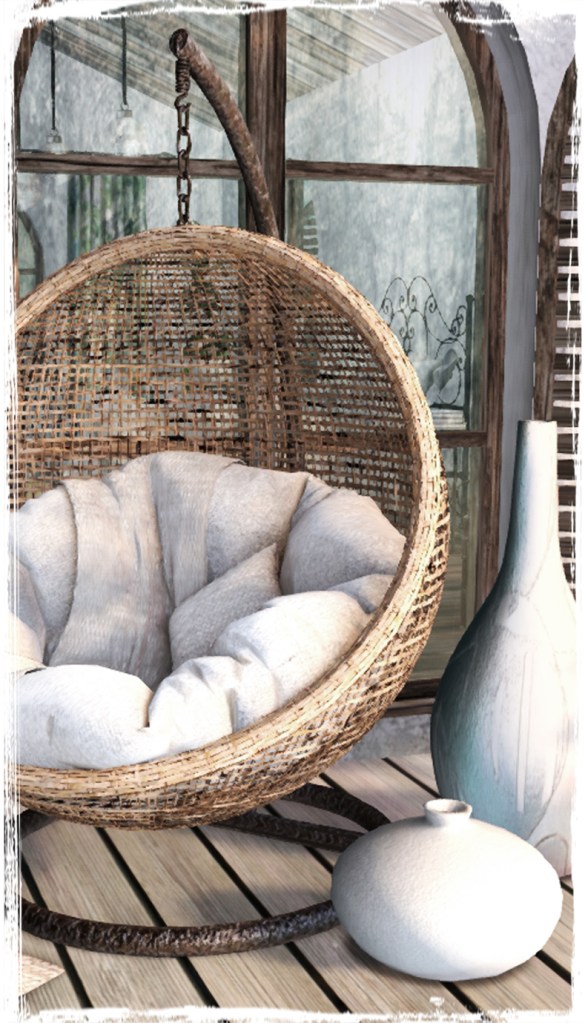 This set includes Rattan Cocoon chairs Fatpack includes all 3 chair styles. 9-10li. Rug and tall and short pots 1-2li. All items have a texture options menu and the Chair has many cuddles and singles bento animations. Handcrafted original mesh. Modify | Copy