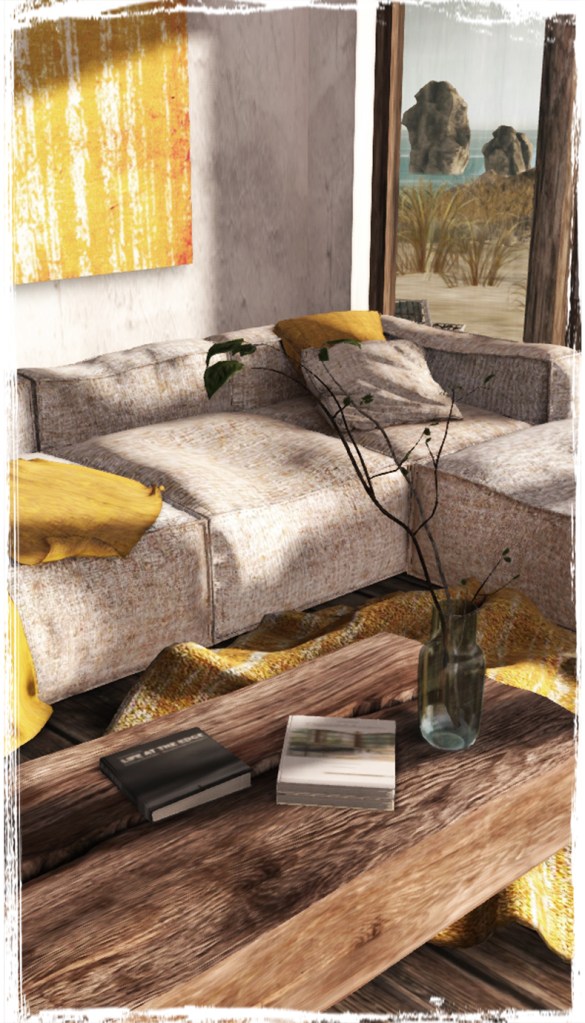 This set includes a comfy sofa 11li, a coffee table, vase, books and two rugs all 1li. The sofa and rugs all have a texture options menu and the sofa has many cuddles, singles and friends bento animations. Handcrafted original mesh. Modify | Copy