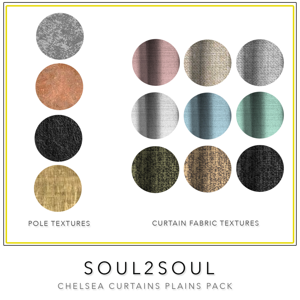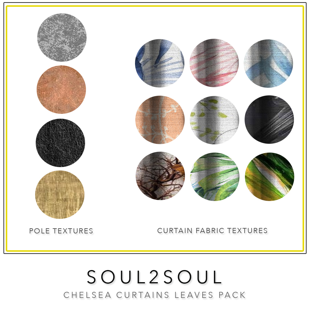 4 Styles in the pack, singles and double. Equipped with an easy to use texture options menu. 4 pole options, 9 curtain fabric options with a cheeky autumn/fall fabric included.