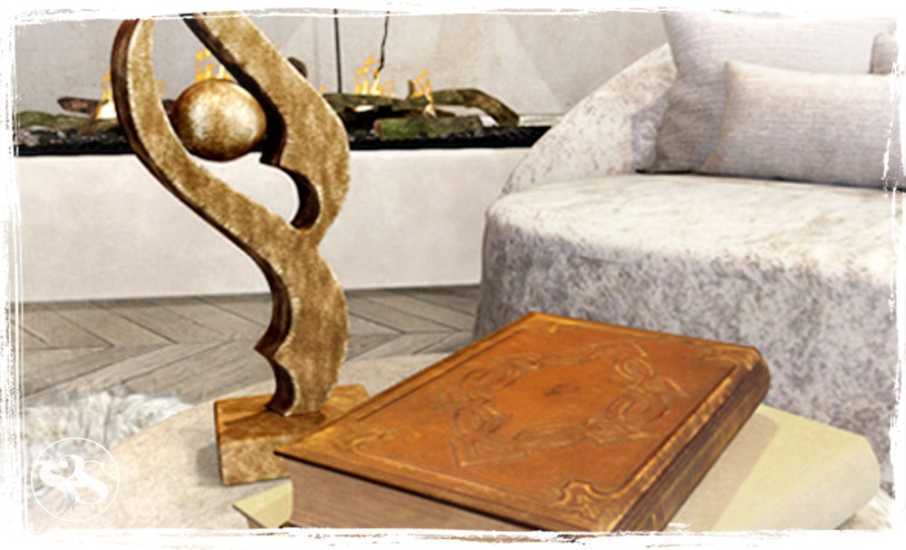 This collection includes velvet Chaise and Ottoman with texture options and cuddles/singles Bento animations. Double sided fireplace with flames and sound on/off on touch and fireplace wall can be adjusted for different ceiling heights and tintable. Coffee table, floor lamp and lights have texture options. Lights have on/off/intensity options. Also fluffy wool rug, bronze sculpture and books. Bronze wall art included as a bonus item in the full collection. 10 items. 1li – 5li each. Handcrafted original mesh. Modify | Copy.